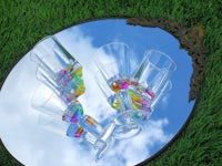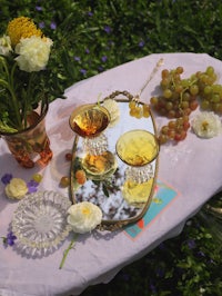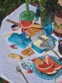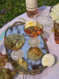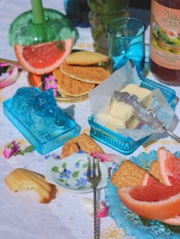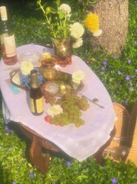 A brand focused on rehoming beauty deserves an aesthetic as alluring as the objects sold. Punchy pastels and complementary colors pair well with playful organic curves, fluffy flowers, and fresh fruits. High-contrast, modern font channels mid-century, while san-serifs bring the branding into contemporary times.